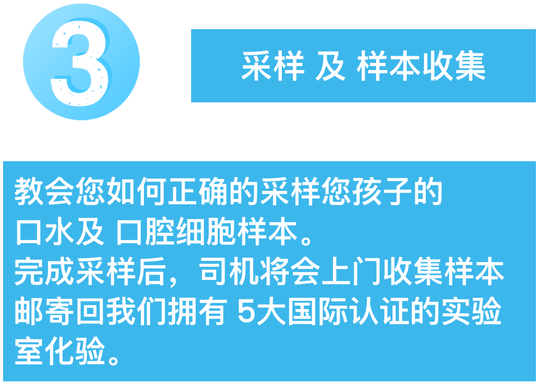 完成采样后,司机将会上门收集样本邮寄回我们拥有 5大国际认证的实验室化验。
