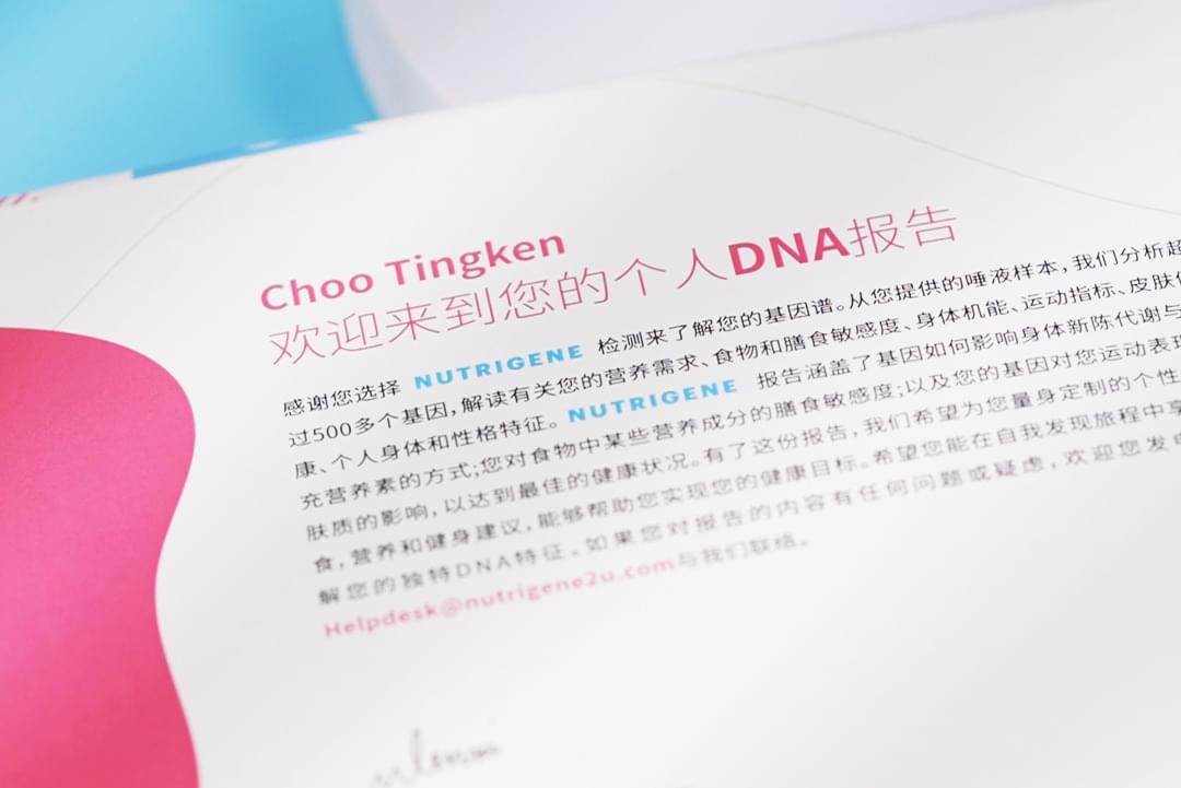 在这里我想感谢 Nutrigene 团队的真诚与用心。