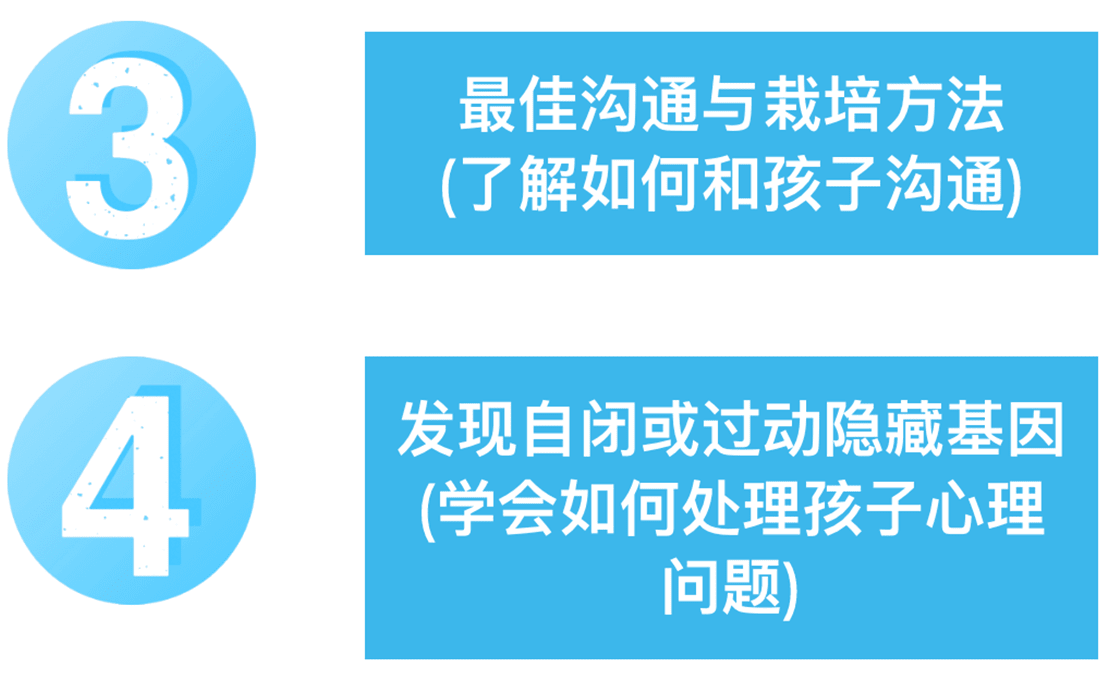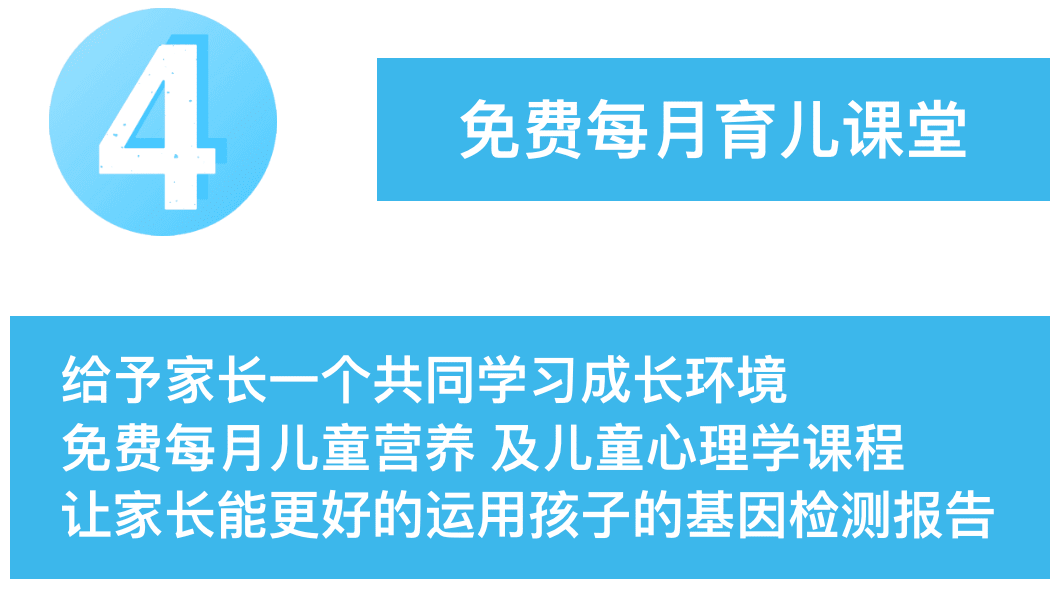 可以透过我们专业的基因顾问来了解您的孩子的状态,看是否适合我们的基因检测,并且帮助你的孩子制定一个“一生人一次”的人生计划