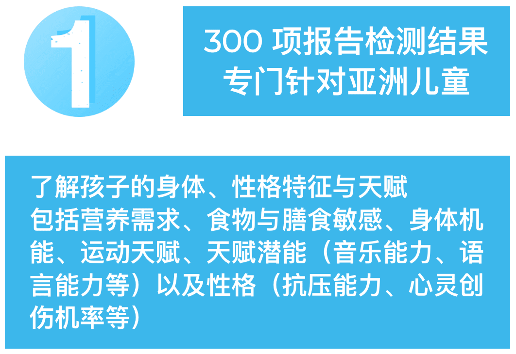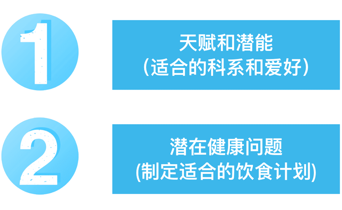 包括营养需求、食物与膳食敏感、身体机能、运动天赋、天赋潜能(音乐能力、语言能力等)以及性格(抗压能力、心灵创伤机率等)