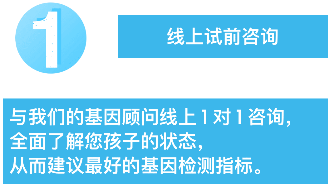 与我们的基因顾问线上 1 对 1 咨询,全面了解您孩子的状态,